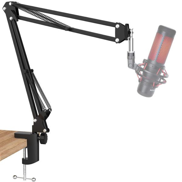 – Para micrófonos condensador como HyperX, requiere shock mount incluido en el micrófono (atril no lo incluye)