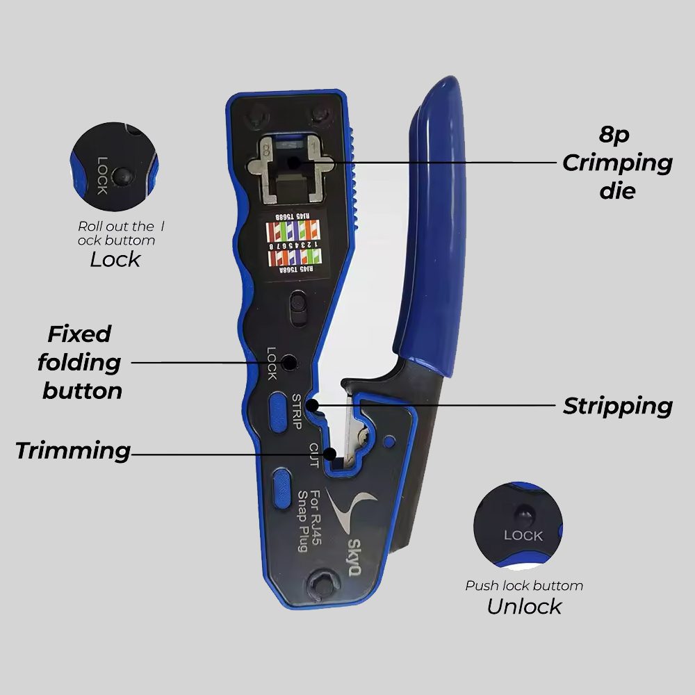Herramienta crimpeadora para conectores RJ45 Cat5e / Cat6 / Cat6a y cables UTP de 23 a 26AWG