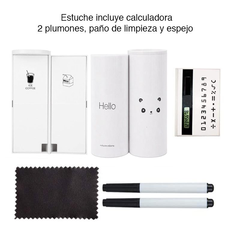 Este estuche para lápices NewmeBox marca Newo es un case creado para sacar absoluto partido a los estuches para lápices tradicionales. Este estuche incluye en su interior una calculadora, un espejo, una pizarra (para tomar notas importantes) y dos plumones. Además el espacio adicional te permitirá guardar, por ejemplo, tus lentes ópticos o incluso tu maquillaje.