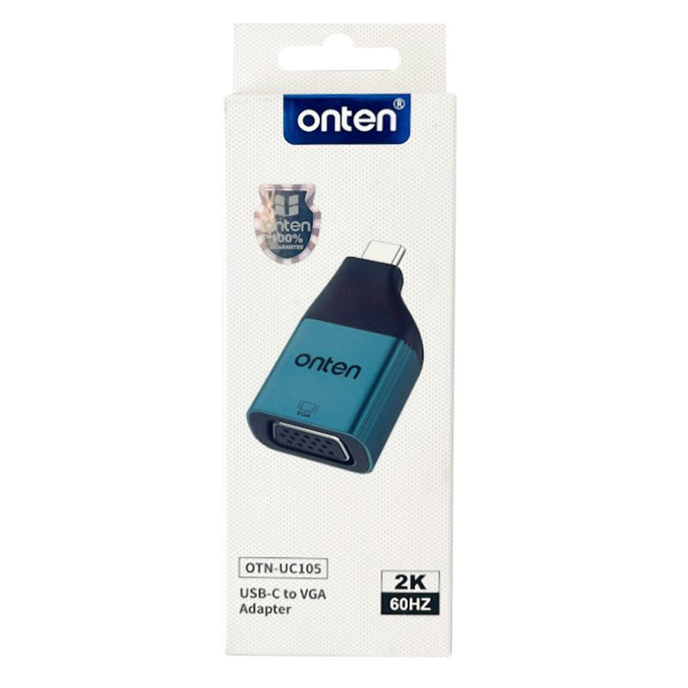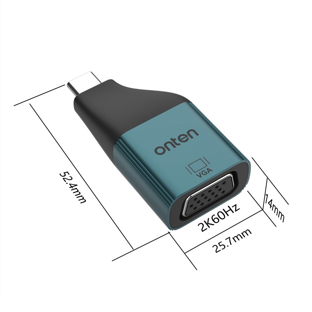 El Adaptador USB C a VGA  Onten es un adaptador compacto y elegante que permite conectar dispositivos con puerto USB C o Thunderbolt 3 a monitores, televisores o proyectores con entrada VGA. Ofrece una resolución de hasta 2K a 60 Hz, asegurando una reproducción clara y fluida para presentaciones, clases en línea, reuniones profesionales o entretenimiento en pantalla grande.