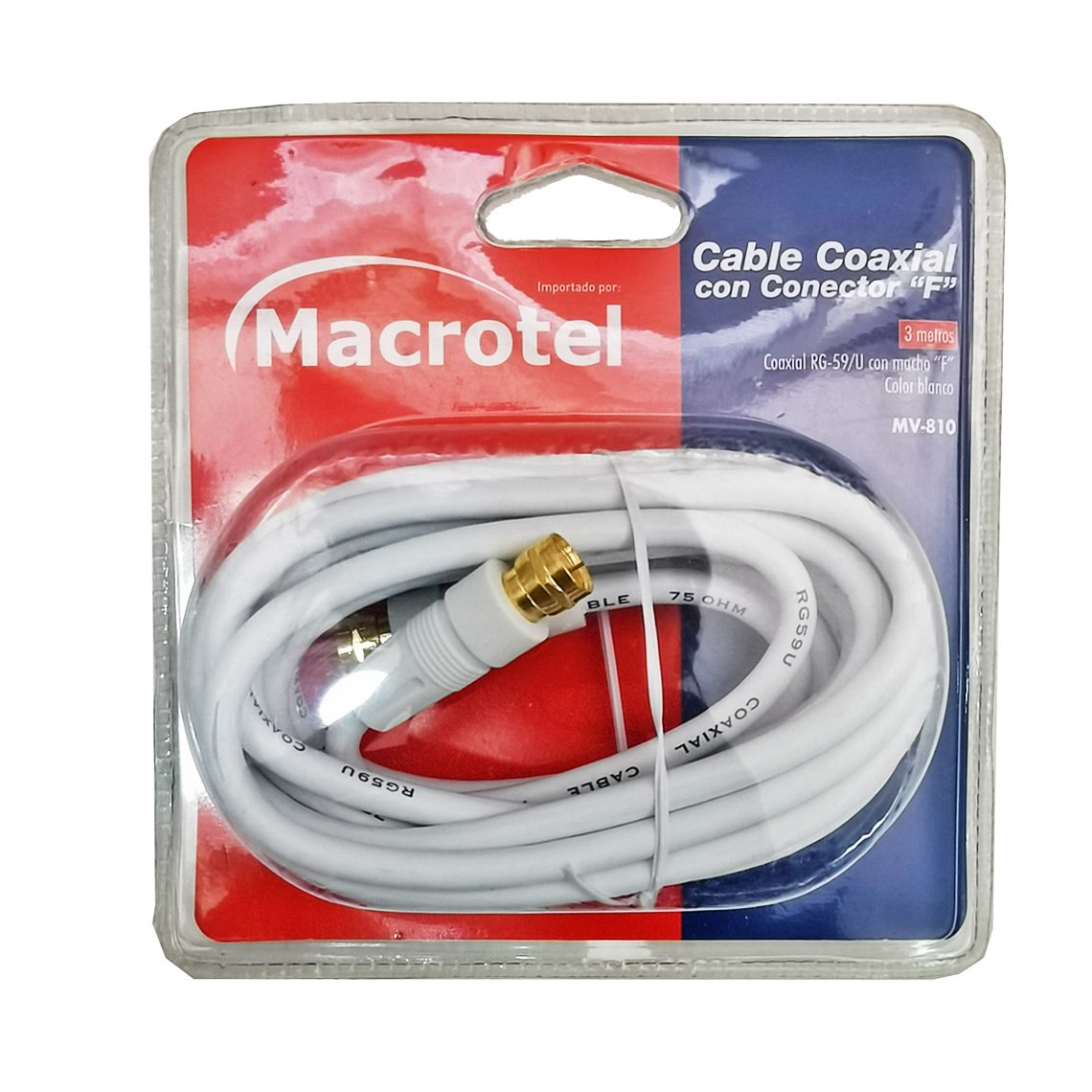 Cable coaxial para conectar a equipos de video como TV, monitores de TV, VCR, antenas, entre otros