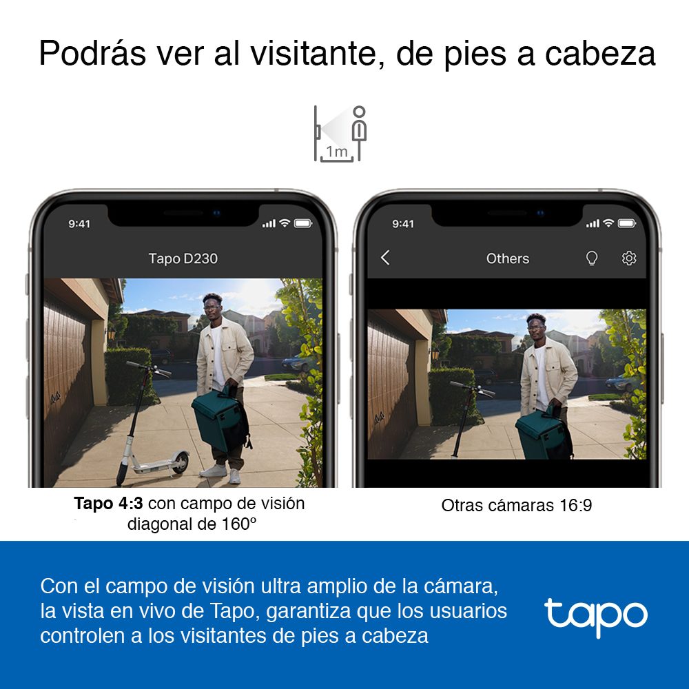 – Con vista de pies a cabeza: campo de visión 4:3 a diferencia de otros timbres de 16:9